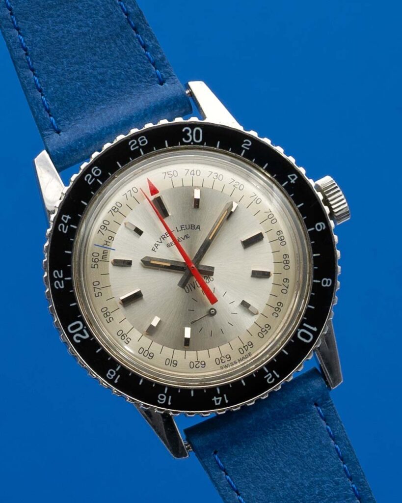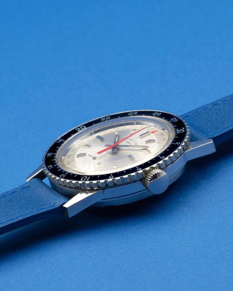 Because we love tool watches here another Favre Leuba Bivouac. Back in 1962 Favre Leuba launched the world’s first wristwatch with a mechanical altimeter and barometer. The whole conditions are great, dial is flawless, showing a nice tritium patina. The crown has been replaced in the past. You probably won’t be climbing the Matterhorn or going on an Antarctic expedition, but it’s nice to think you can do it with your imagination and with this watch on your wrist.